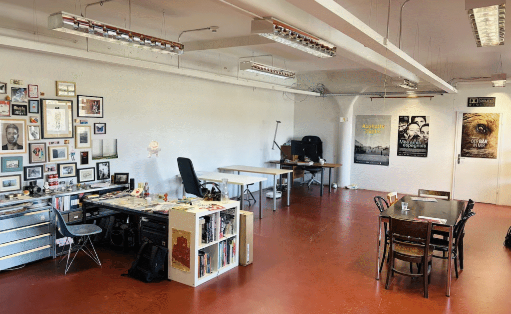 Die Ateliergemeinschaft «Filmhaus Bern» vermietet 2 helle Arbeitsplätze in einem modernen & offenen Kreativ-Atelier mit Industriecharm im ehemaligen Ryff-Areal, direkt gegenüber dem Marzili und der Aare.
